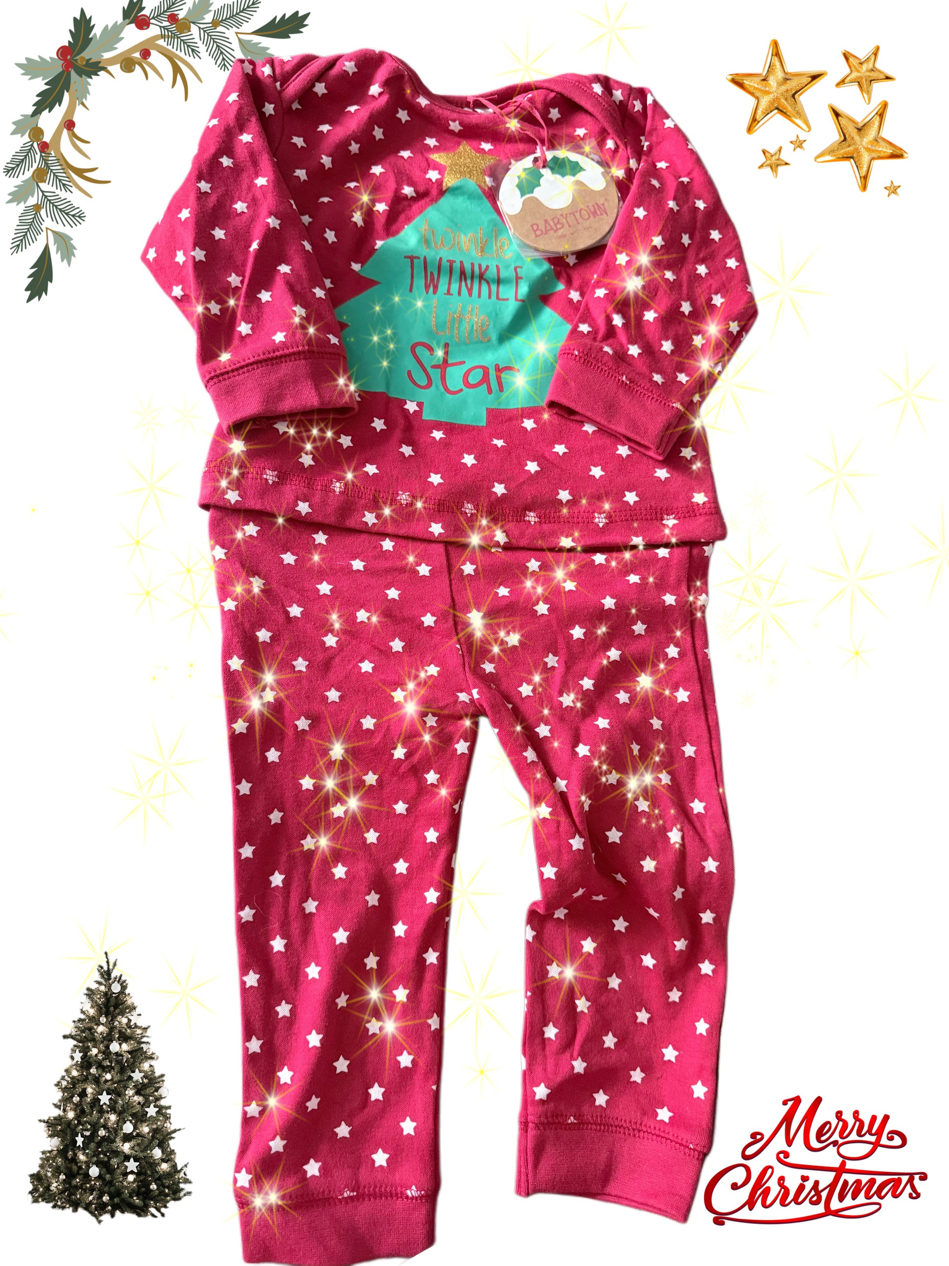 Super soft Christmas pjs . 18/24 months . Can be personalised which will be in the cost .