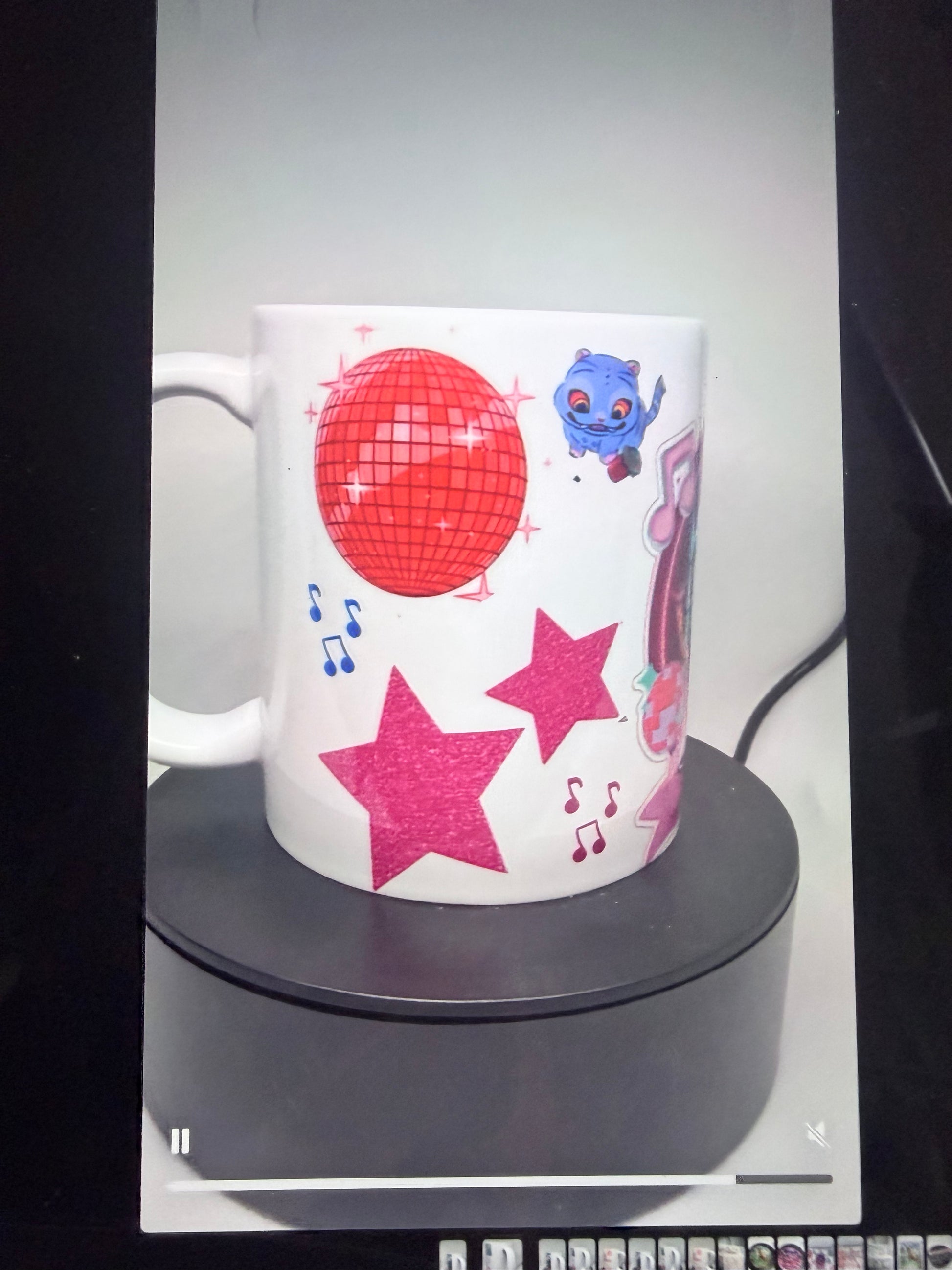 Beautiful and bright k-pop 11oz mug, coaster, face flannel and pen set . Personalised included in the cost . Ideal for a stocking fillers or birthday gift .